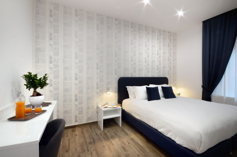 Camere moderne dotate delle maggiori comodità, ognuna con bagno privato, set di cortesia, wi-fi, scrivania, minibar, cassaforte, adattatore universale, comodini con presa usb, armadio con porta valigia, climatizzatori, aria calda, smart tv.