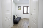 uma sala de estar luminosa com sofá-cama, ideal para um hóspede adicional.