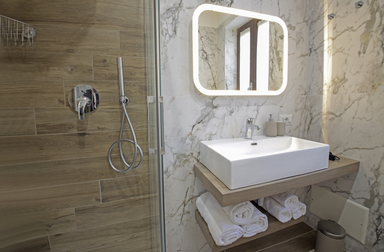 um banheiro funcional e bem cuidado.